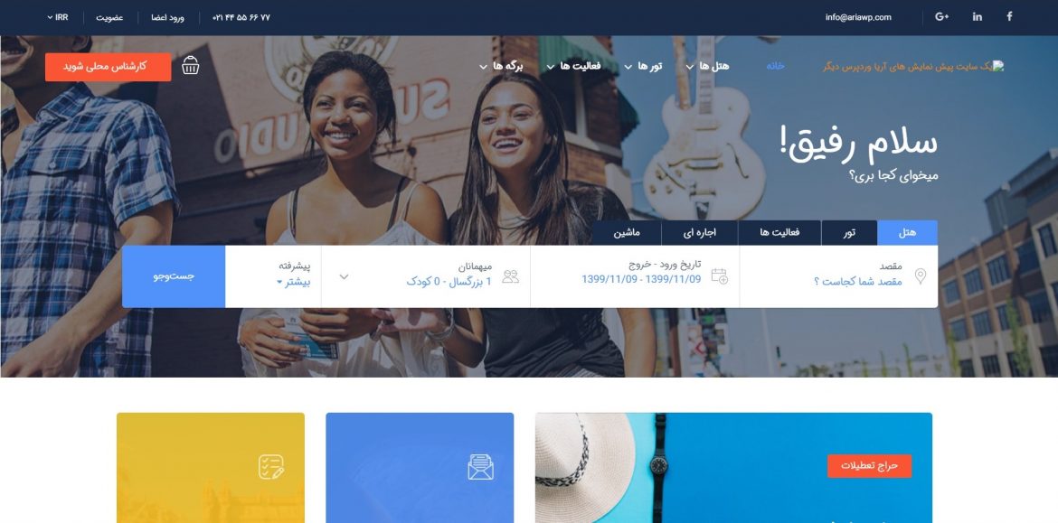 پیش نمایش دموها انتخاب راحت ظاهر سایت مورد نظر شما با پیشنمایش کاملا زنده2 اسفند 1399قالب رویداد و کنفرانس Event Champ1 اسفند 1399 قالب عکاسی و نمونه کار نووآ29 بهمن 1399قالب آگهی9 بهمن 1399قالب تراولر1 بهمن 1399قالب املاک واقعی30 دی 1399قالب شرکتی سئونگر30 دی 1399قالب موسیقی کالیاس30 دی 1399قالب خبر خوب29 دی 1399قالب بیلدوالبارگزاری موارد بیشتر